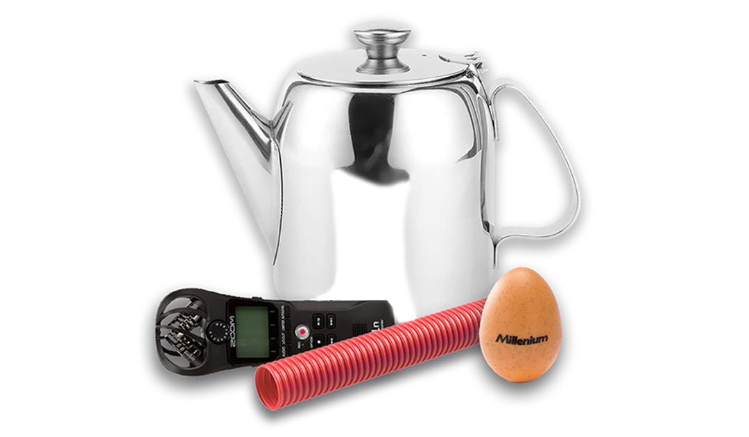 Сэмплы: Металлический чайник, руки, гофрированная трубка, шейкер, звуки двора